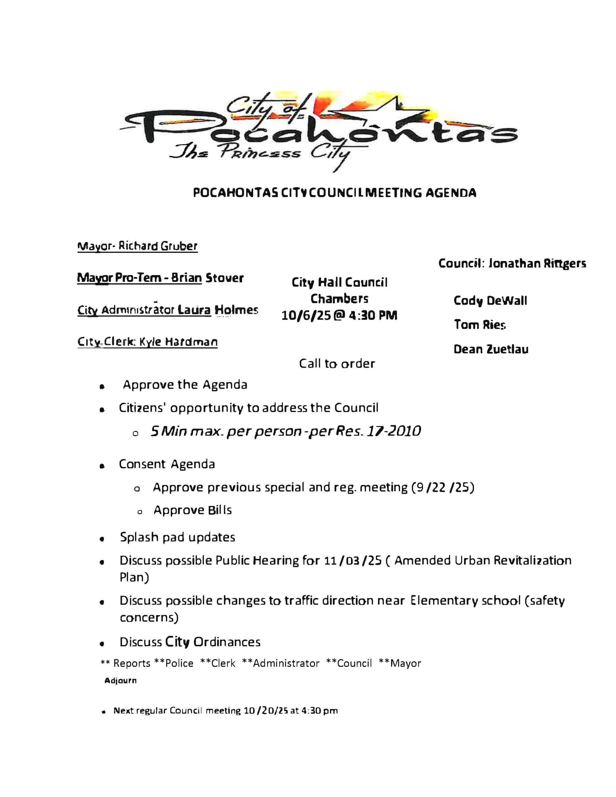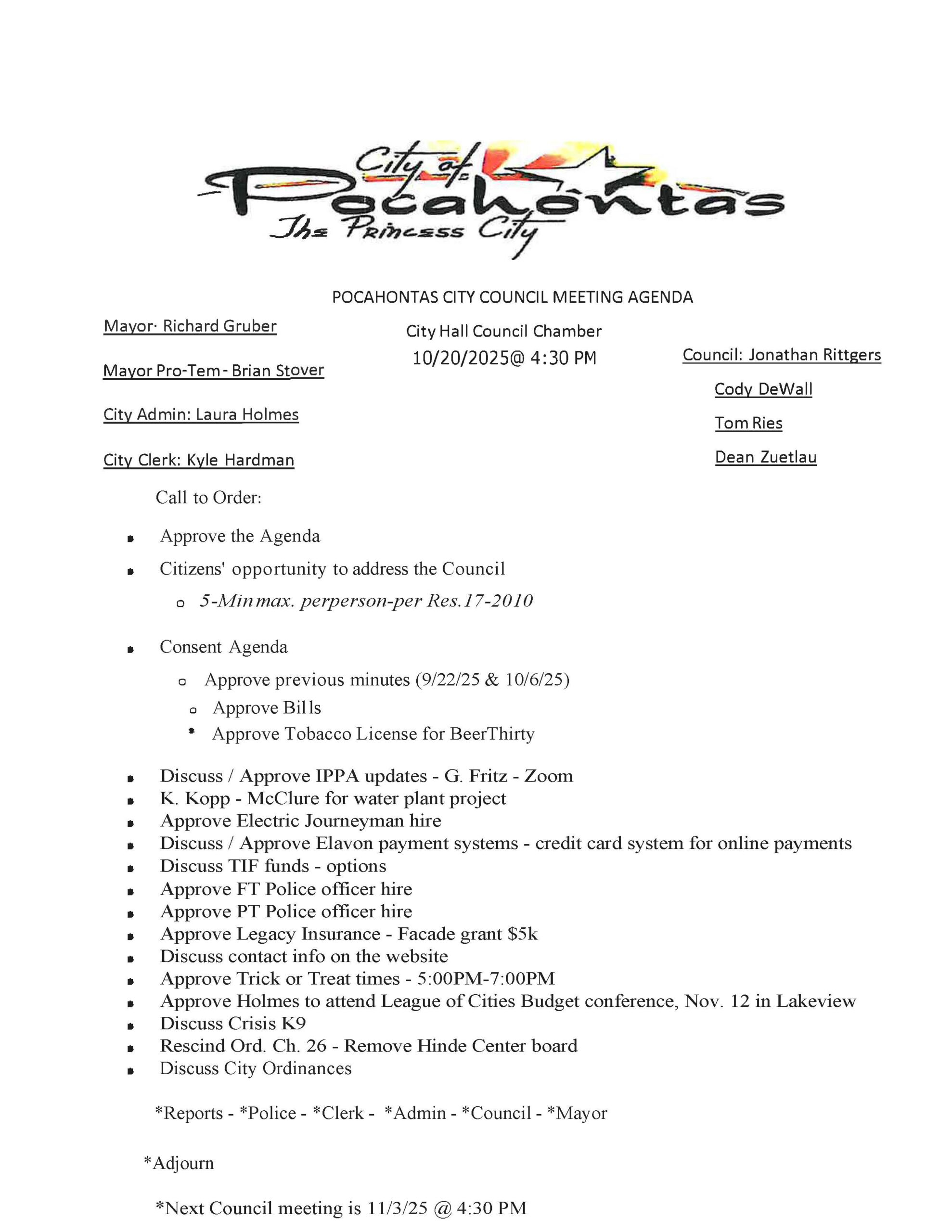 City council agendas for the council meetings on the first and third Mondays of each month, except for when Monday is a holiday.